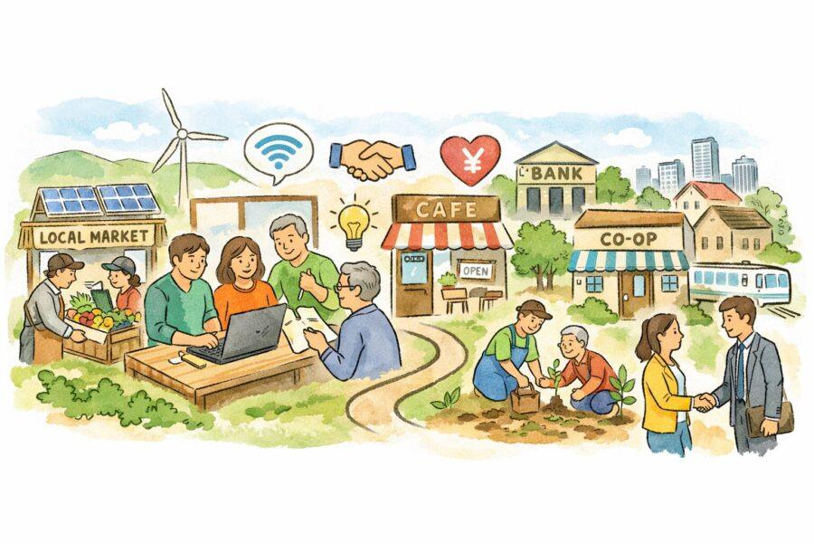 近年、コミュニティ経済は理論的な概念にとどまらず、実際の経済・ビジネスの現場で具体的な形を取り始めています。地域を基盤とした中小事業者や自治体、金融機関が連携することで、地域内での調達や雇用を重視する取り組みが広がっています。こうした動きは、資金が地域外へ流出しにくい構造を生み、地域経済の安定に寄与します。