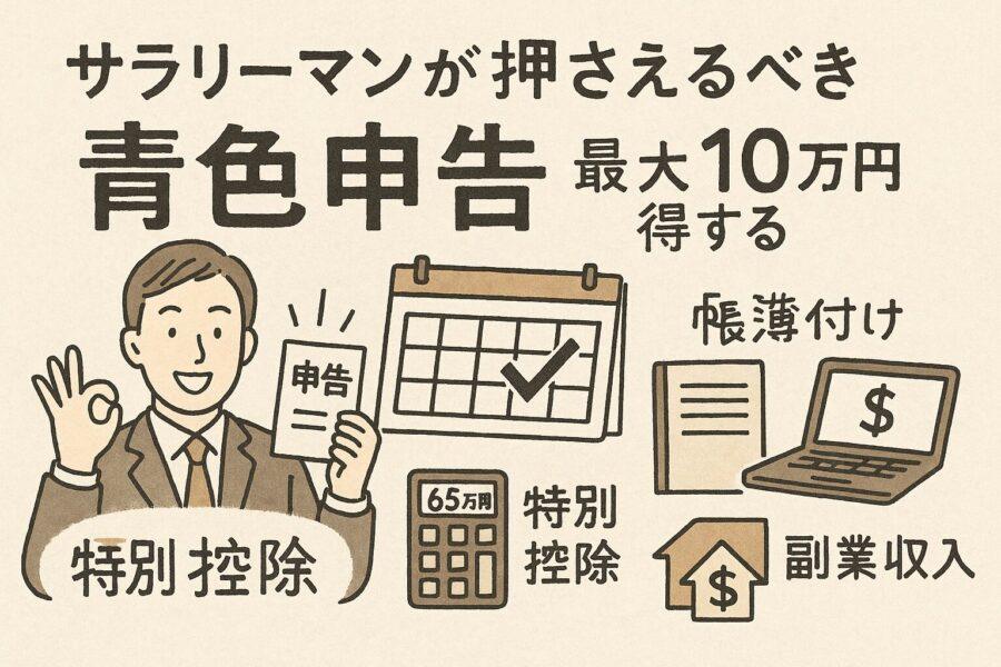 副業を始めたサラリーマンが最初に直面するのが「確定申告」という壁です。中でも「青色申告」は、少し手間をかけるだけで年間10万円以上の節税効果を得られる強力な制度です。しかし、「自分にも関係あるのか」「手続きが複雑そう」と敬遠してしまう人も少なくありません。実際には、条件を満たせば会社員でも活用可能で、特に副業を事業として発展させたい人にとって欠かせない仕組みです。本記事では、青色申告の基本的な仕組みから、実際の手続きの流れ、節税の具体例までを体系的に解説します。数字や申告に苦手意識のある人でも理解できるよう、丁寧に整理しました。