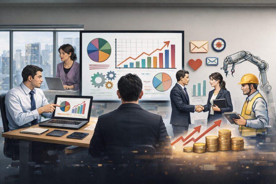 たとえば営業活動では、成約率や提案内容を分析することで、成果につながりやすい行動を明確にできます。業務改善の場面でも、作業時間やミスの発生状況を可視化することで、課題の所在がはっきりします。