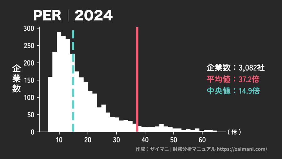 これは、「投資家が利益の15年分を評価して株を買っている」と解釈できます。日本市場全体では15倍前後が平均とされ、一般的な目安になります。