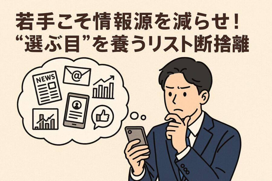 本記事では、若手こそ情報源を意識的に減らし、“選ぶ目”を鍛えるための考え方と実践法を解説します。情報過多時代を生き抜くための「リスト断捨離術」で、確かな判断力と成長の加速を目指しましょう。