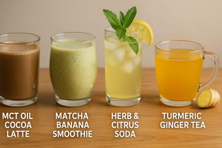 次にスーパーフード系(MCTオイルラテ・スムージー)は、朝食の代わりや休憩直前に飲むとエネルギーが安定しやすく、午前中や午後前半の生産性を高めます。