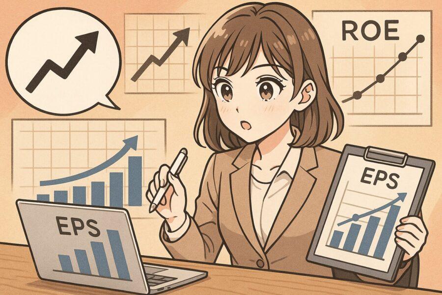 ROEとEPSは、株価が長期的に上昇している企業に共通する最も本質的な指標です。ROEは経営の資本効率と稼ぐ力を映し出し、EPSは企業の利益成長を株主一人ひとりの取り分として可視化します。